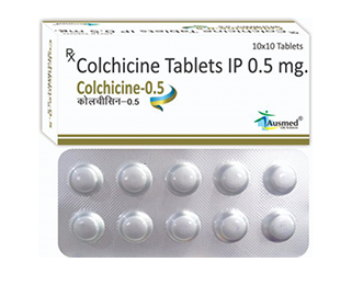 Οι διαθέσιμες εμπορικές ονομασίες περιλαμβάνουν τη «Κολχικίνη Wyeth» και τη «Κολχικίνη Τerapia», οι οποίες προορίζονται αποκλειστικά για ιατρική χρήση και διατίθενται μόνο με συνταγή. Η Κολχικίνη έχει αποδειχθεί αποτελεσματική για τους παρακάτω σκοπούς: