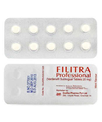 - Το Filitra Professional χρησιμοποιείται για τη θεραπεία της στυτικής δυσλειτουργίας. Ο μηχανισμός δράσης του περιλαμβάνει την αναστολή των ενζύμων που αποκαλούνται φωσφοδιεστεράσες, γεγονός που οδηγεί στη χαλάρωση των αιμοφόρων αγγείων και αυξάνει τη ροή του αίματος στο πέος.